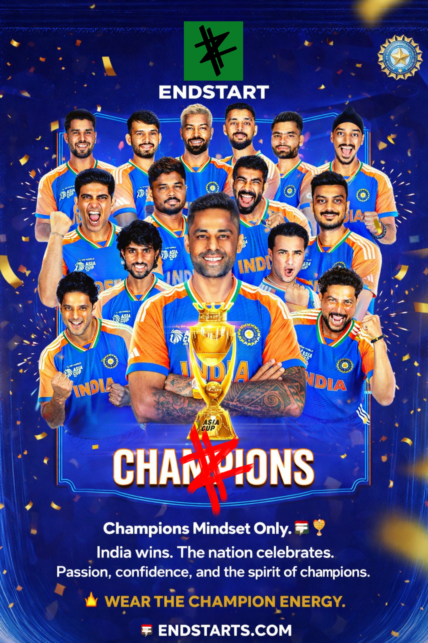 At Endstart, we believe in celebrating bold beginnings and triumphant endings with a wardrobe that inspires confidence. Our clothing is crafted with premium-quality fabrics, designed to blend comfort, durability, and trendsetting style. Whether you're conquering your goals at the gym, heading out for casual outings, or embracing a laid-back lifestyle, Endstart has you covered.We specialize in modern, minimalist designs that resonate with individuality and creativity. From our sleek t-shirts to versatile gym wear, every piece is a reflection of passion and attention to detail. We proudly stand for quality, sustainability, and empowering self-expression through fashion.With Endstart, it's not just about what you wear—it's about starting strong, finishing stronger, and looking great every step of the way. Embrace the journey. Wear Endstart.